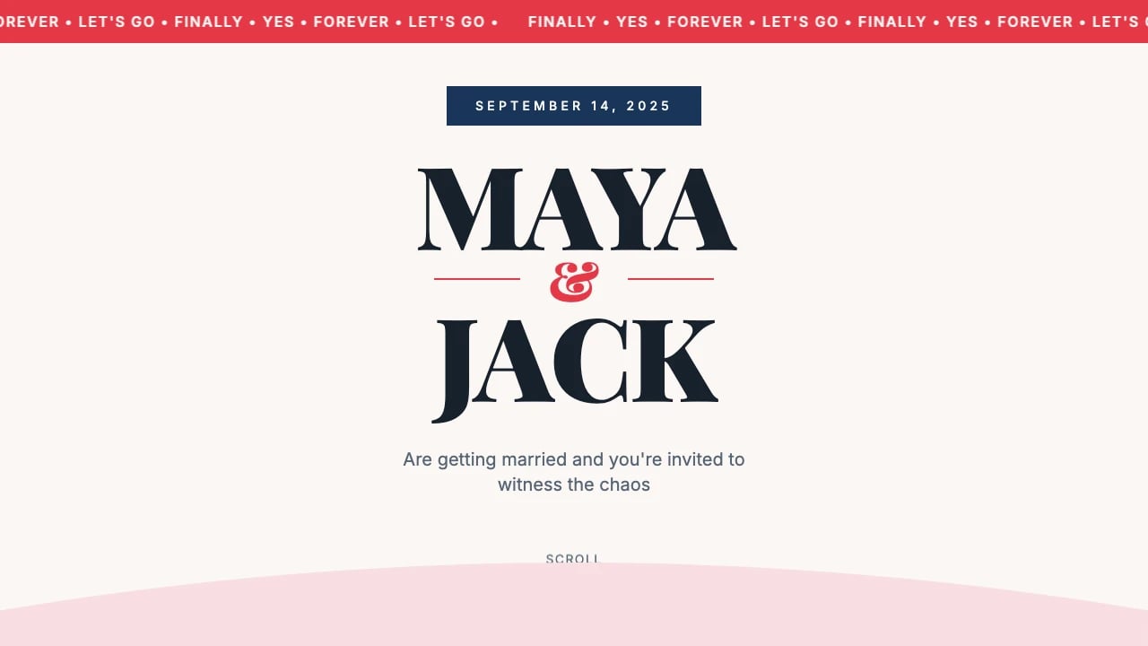 Bold Love WeddingLaunch a bold, poster-inspired wedding website without hiring a developer. Perfect for couples who want something unique or professionals delivering custom sites fast.Websites